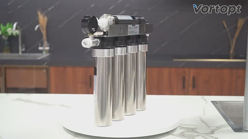 Upgrade to the Vortopt U1, a high-end under sink water filter crafted from food-grade 304 stainless steel for unmatched durability and style. This powerful system employs a 5-stage filtration process, effectively removing chlorine, lead, sediment, and contaminants larger than 0.01 micron, ensuring your drinking water is not only safe but also tastes great. The Vortopt U1 operates without the need for power and includes a real-time water pressure gauge, making it even more convenient and efficient. With easy installation, long-lasting filters, and an environmental focus, it's the smart choice for any home.